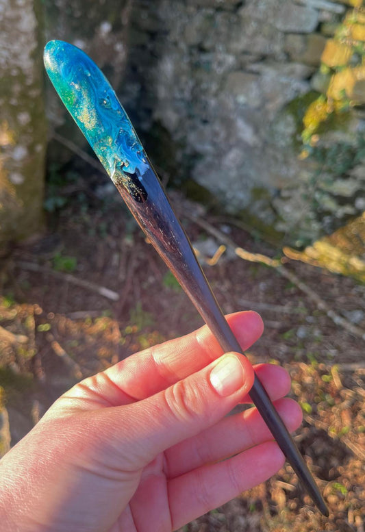 Experience our top-selling Atlantic Ocean Range Hair Accessories. These beautiful wooden hair sticks and forks adorned with authentic sea shells, seaweed, and Mayo beach botanicals, they embody the wild Atlantic way, adding a touch of nature's charm to your style.