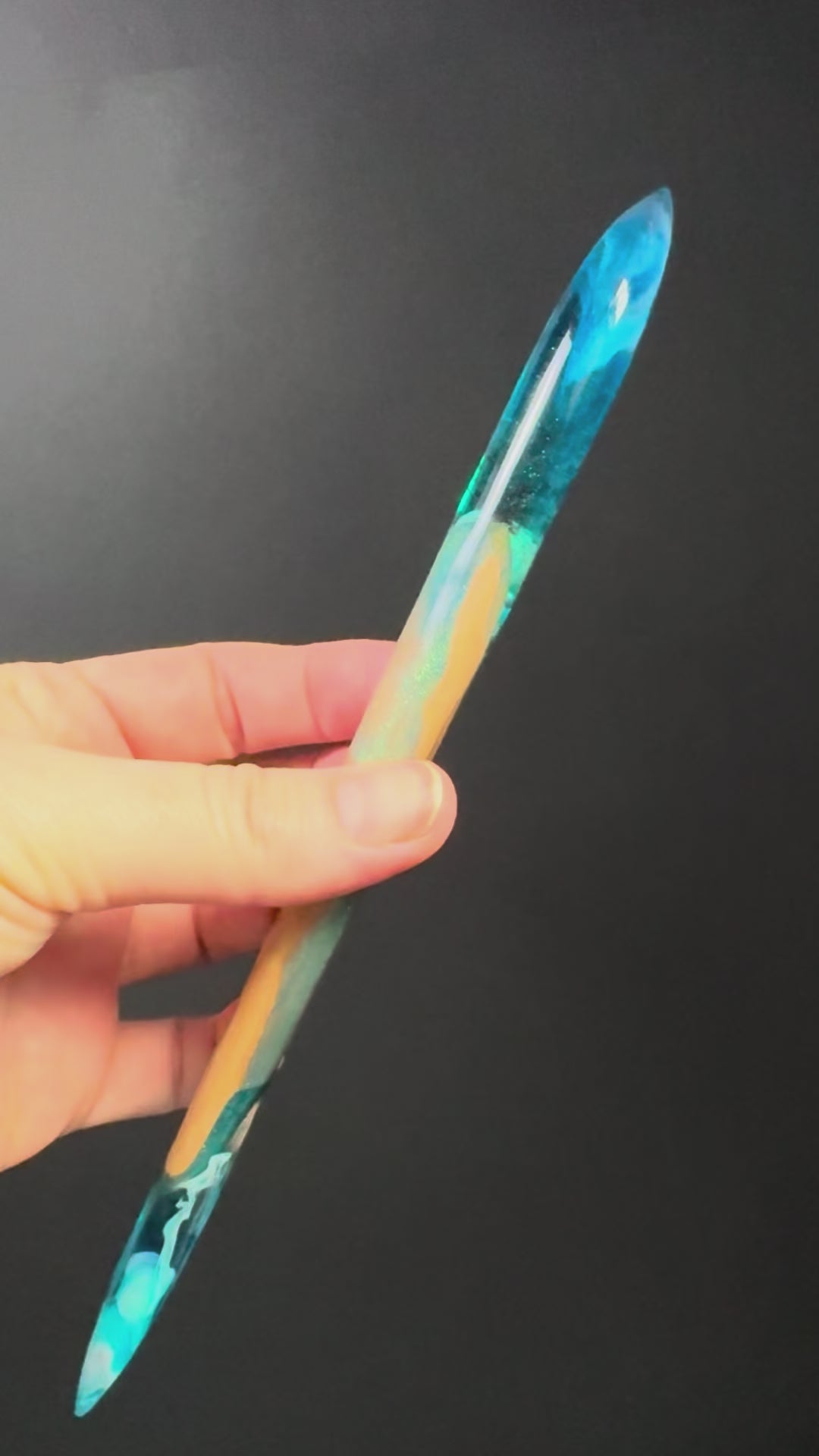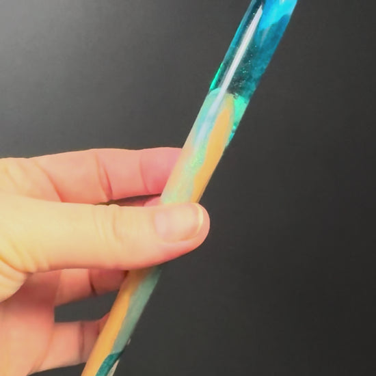 Beautiful Wild Atlantic Way inspired, handmade hair stick is made of resin and acacia wood. It features shells, seaweed and mica powders.