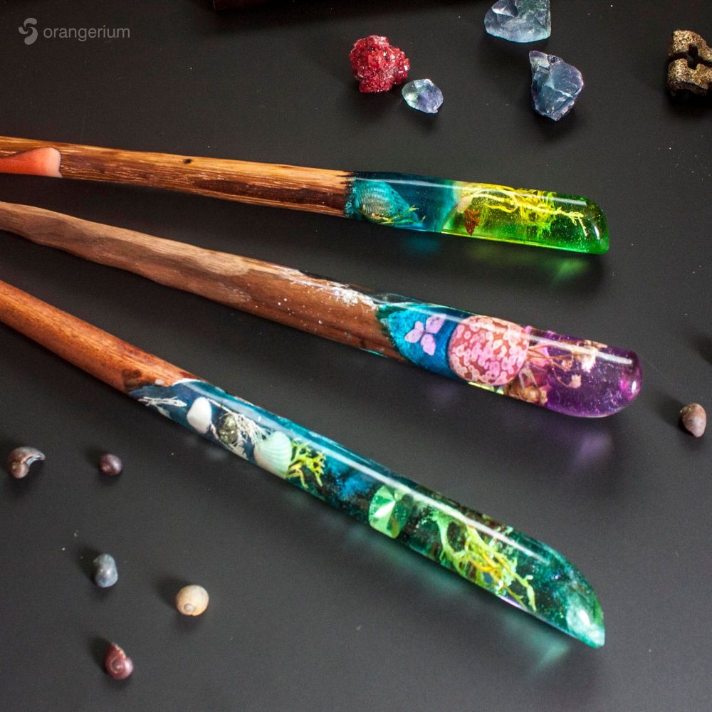 Unique handmade Custom magic wand. Made of resin, wood and ingredients of your choice.