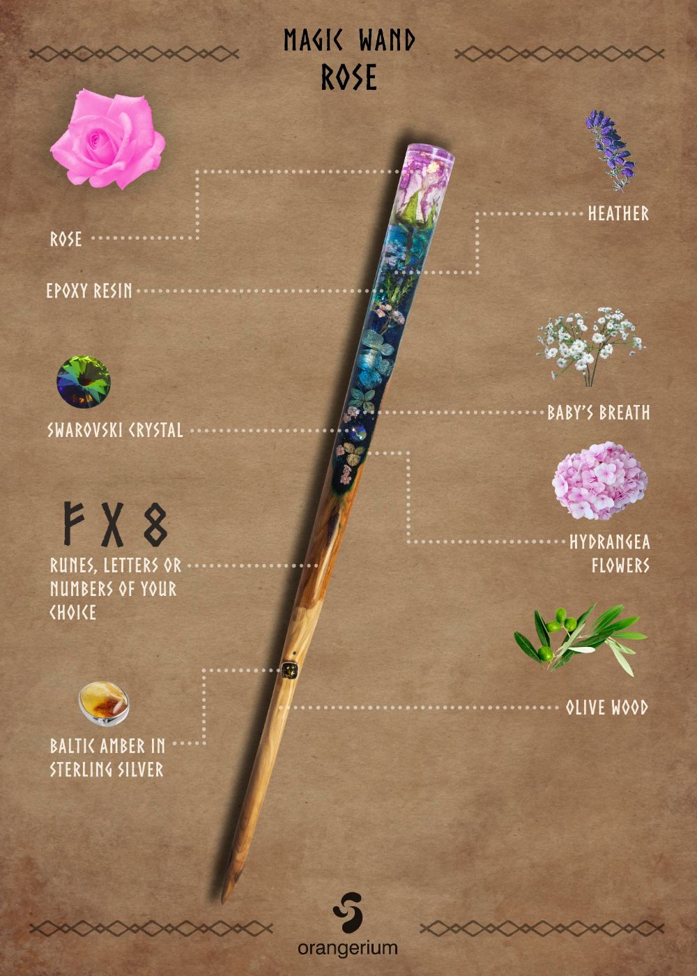 Your Magic Wand can be personalized with initials, numbers, Elder Futhark runes or a word of your choice. This will also make it a perfect sentimental gift for someone special.