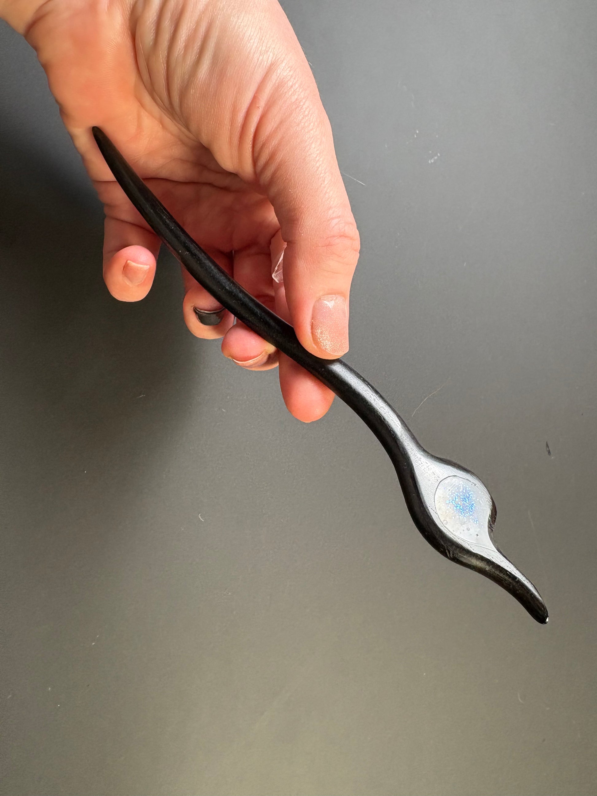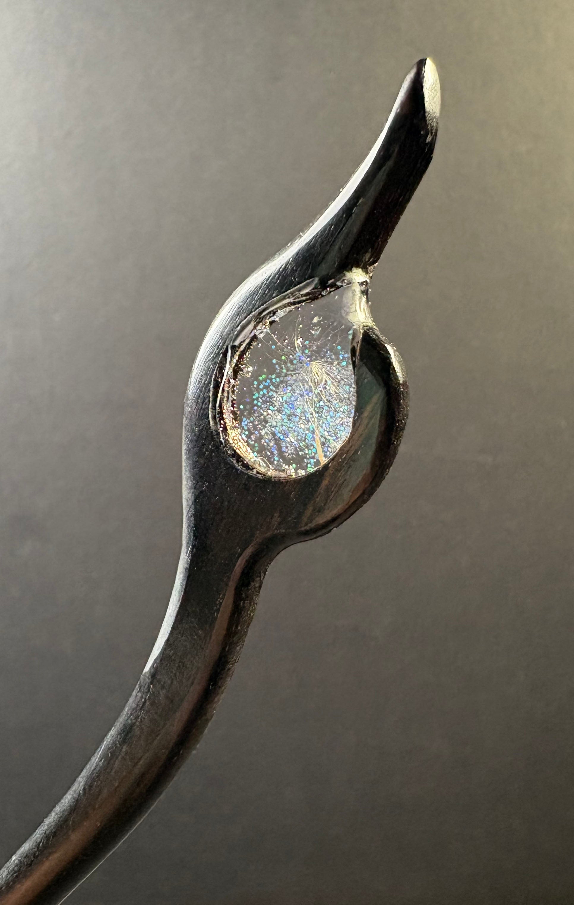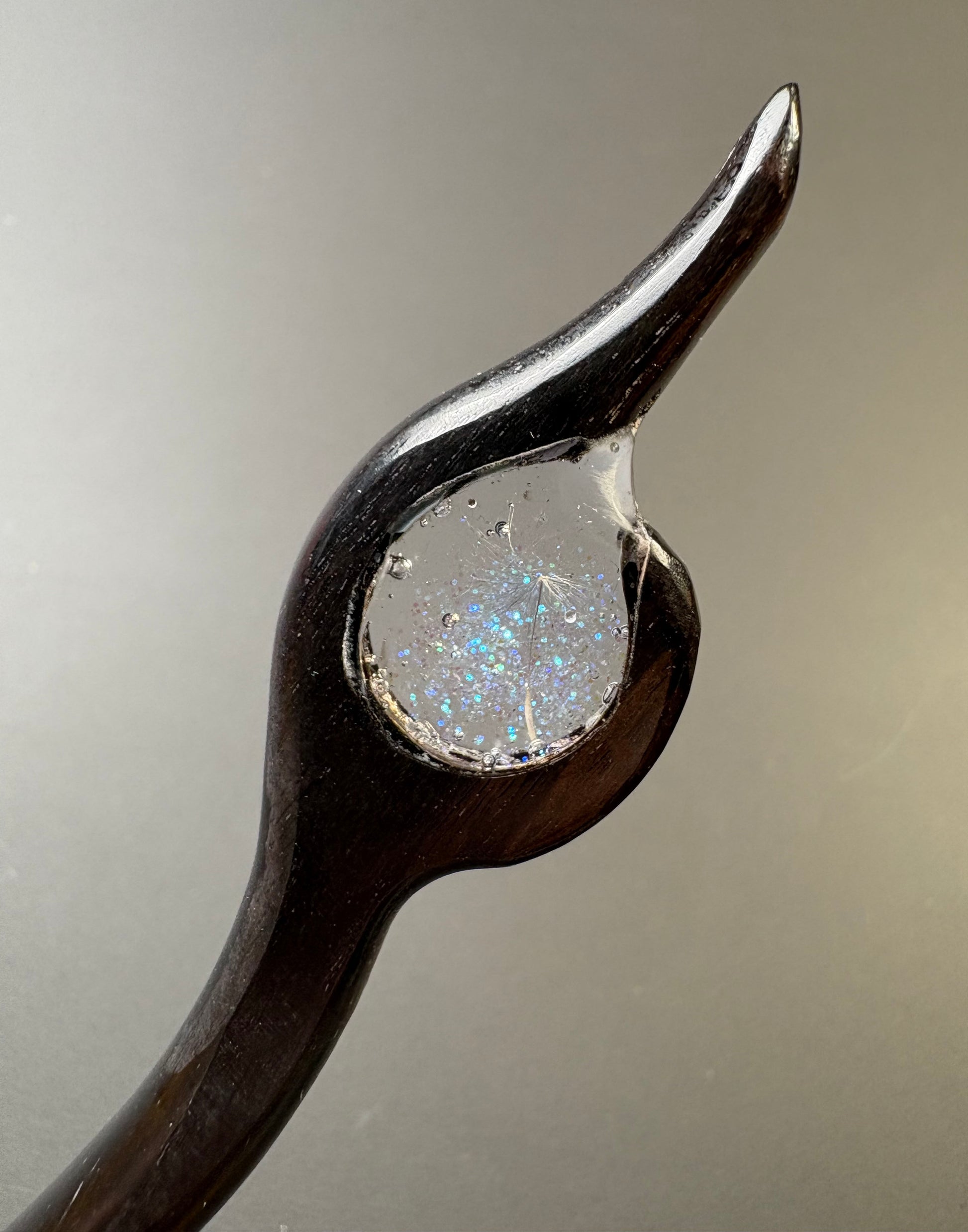 Handmade hair stick inspired by beauty of Irish nature. It is made of resin, black wood, dandelion and mica powders. Resin polished to clear high gloss finish. Wood sealed with Danish oil. Very smooth and nice in touch.