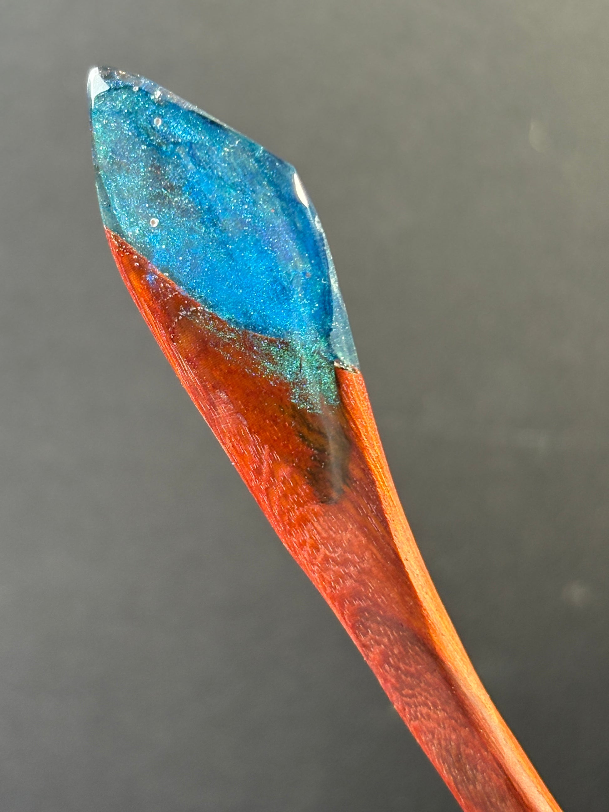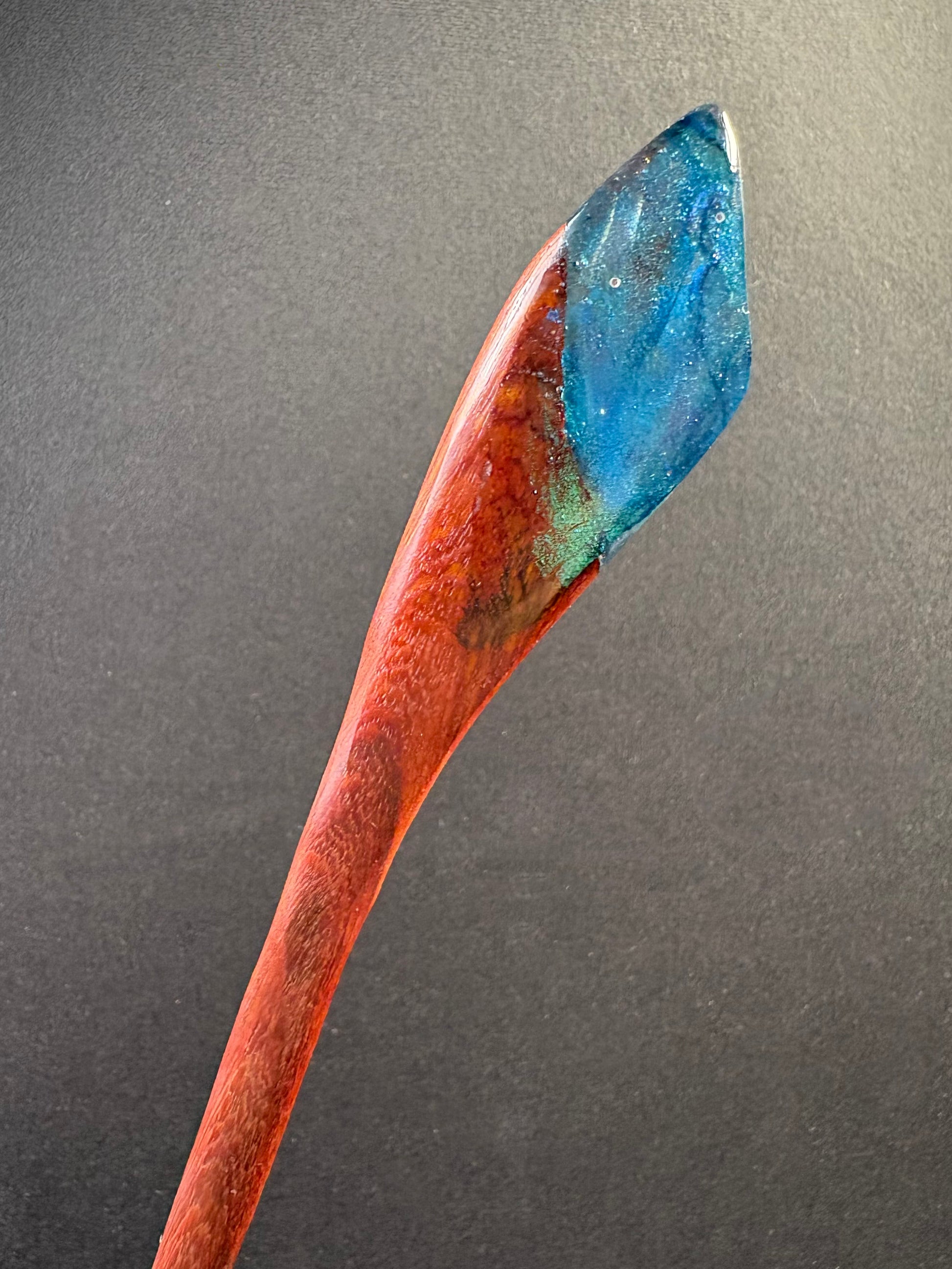 Handmade hair stick inspired by beauty of Irish nature. It is made of resin, rosewood and mica powders. Resin polished to clear high gloss finish. Wood sealed with Danish oil. Very smooth and nice in touch.